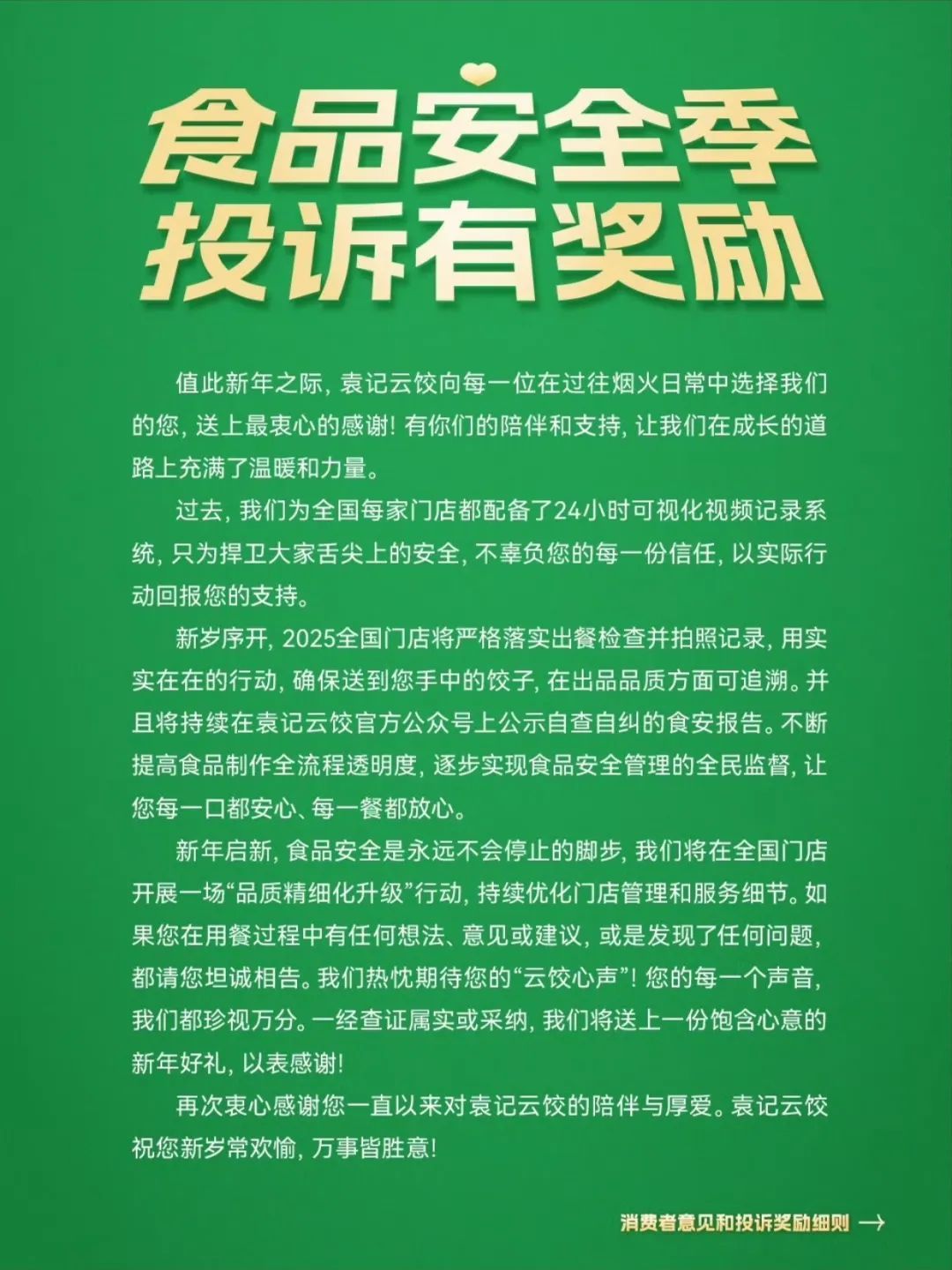 袁记云饺此前发布的有关食品安全声明。图/袁记云饺官方微博